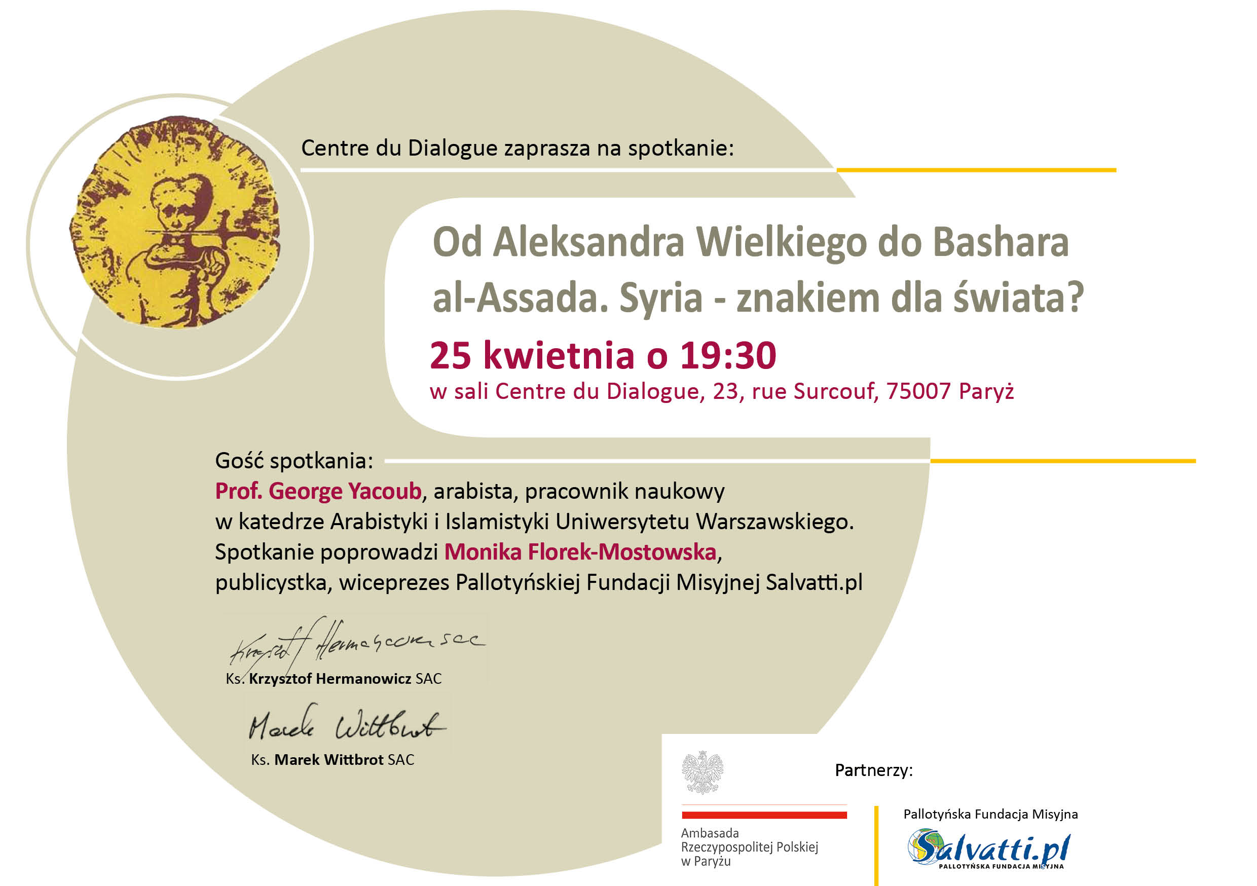 Spotkanie w Centre du Dialogue w Paryżu. Gośćmi spotkania byli: prof. Robert Piłat, filozof związany z Instytutem Filozofii i Socjologii Polskiej Akademii Nauk oraz Uniwersytetem Kardynała Stefana Wyszyńskiego, aktor, Wojciech Wysocki, który prezentował wybrane fragmenty „Filozofii dramatu” ks. Tischnera oraz Monika Mostowska. Spotkanie organizowane przy współpracy Fundacja Salvatti.pl Fot. Marek Wittbrot