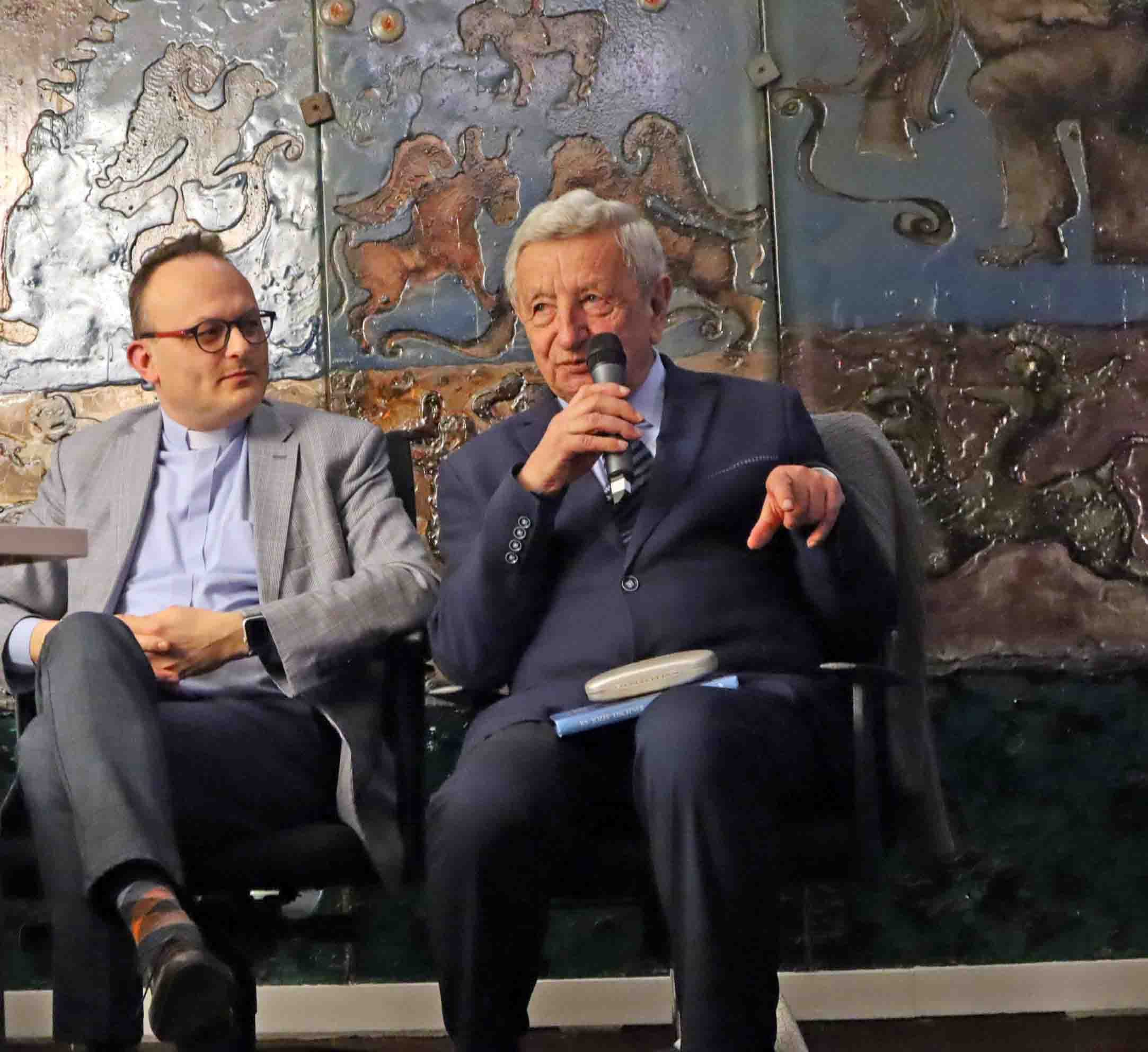 Spotkanie w Centre du Dialogue nt. Tomasz z Akwinu czy Tischner? Spór o realia i metodę. Goście: ks. prof. Piotr Roszak i ks. dr hab. Tomasz Huzarek. Fot. A.M.